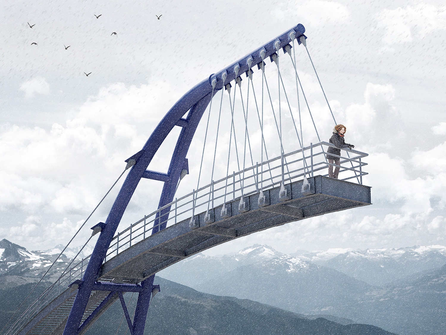 Three words: glacier, conversation, abandoned building. The challenge: design and execute a video narrative inspired by these three words. The animation addresses questions of architectural transformation, the concept of life cycles, and the relationship between building and inhabitant. The story imagines the life journey of a house constructed in a glacier mountain landscape, depicting the physical alterations that it undergoes in response to the ever-changing external forces acting upon it. All illustrations were hand-painted in Adobe Illustrator and Photoshop. Scenes were then animated in Adobe Animate, with final edits and sound compositions composed in Adobe Premiere.